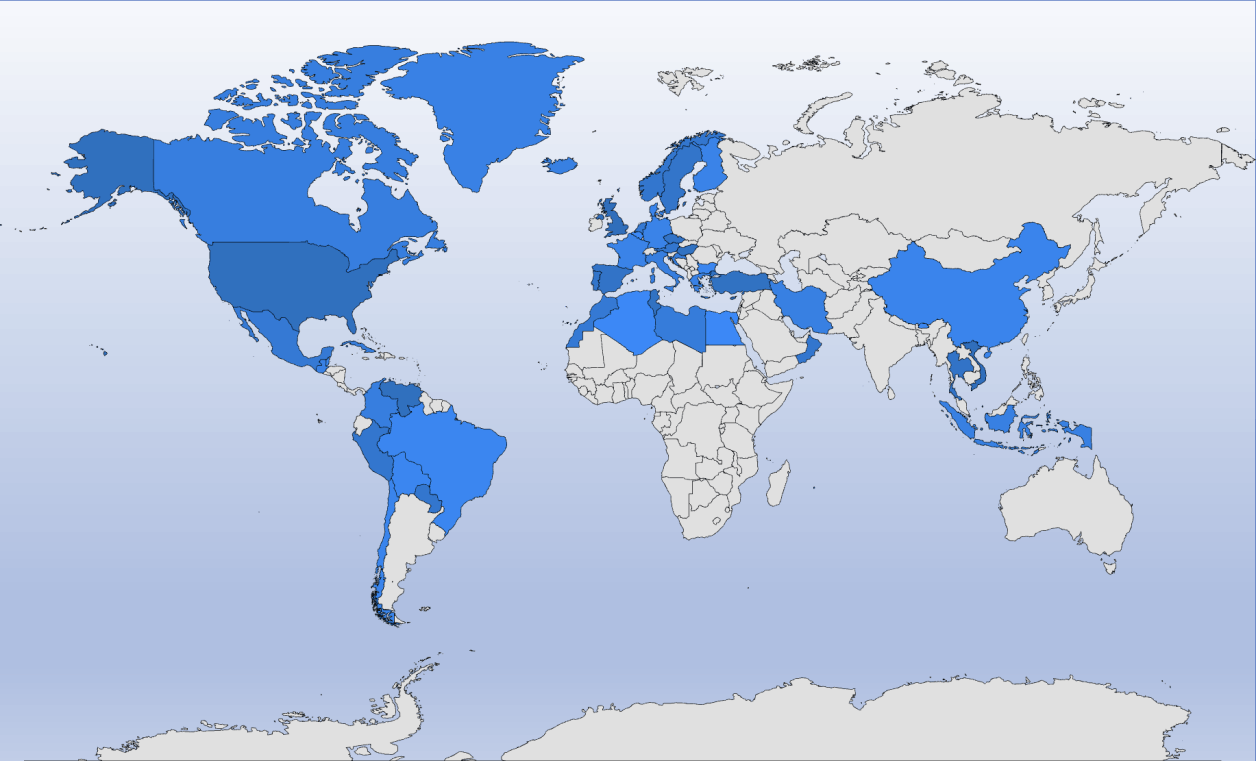 Belgien, Bulgarien, Dänemark, Deutschland, Finnland, Frankreich, Griechenland, Grönland, Island, Italien, Kroatien, Malta, Monaco, Niederlande, Norwegen, Österreich, Portugal, Schweden, Spanien, Tschechien, Türkei, Ungarn, Vatikan, Vereinigtes Königreich, Zypern
