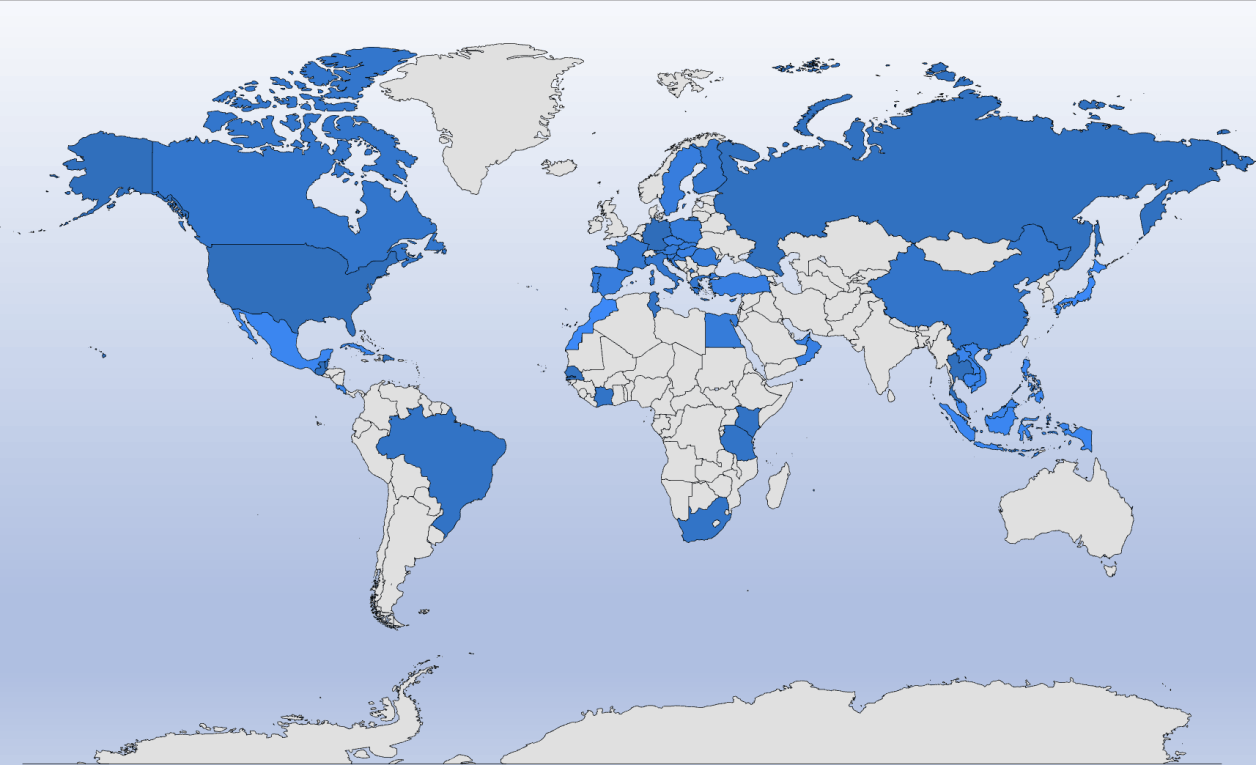 Kanada, Alaska, Hawaii, Vereinigte Staaten USA, Mexiko, Belize, Guatemala, Costa Rica, Brasilien, Kuba, Dominikanische Republik