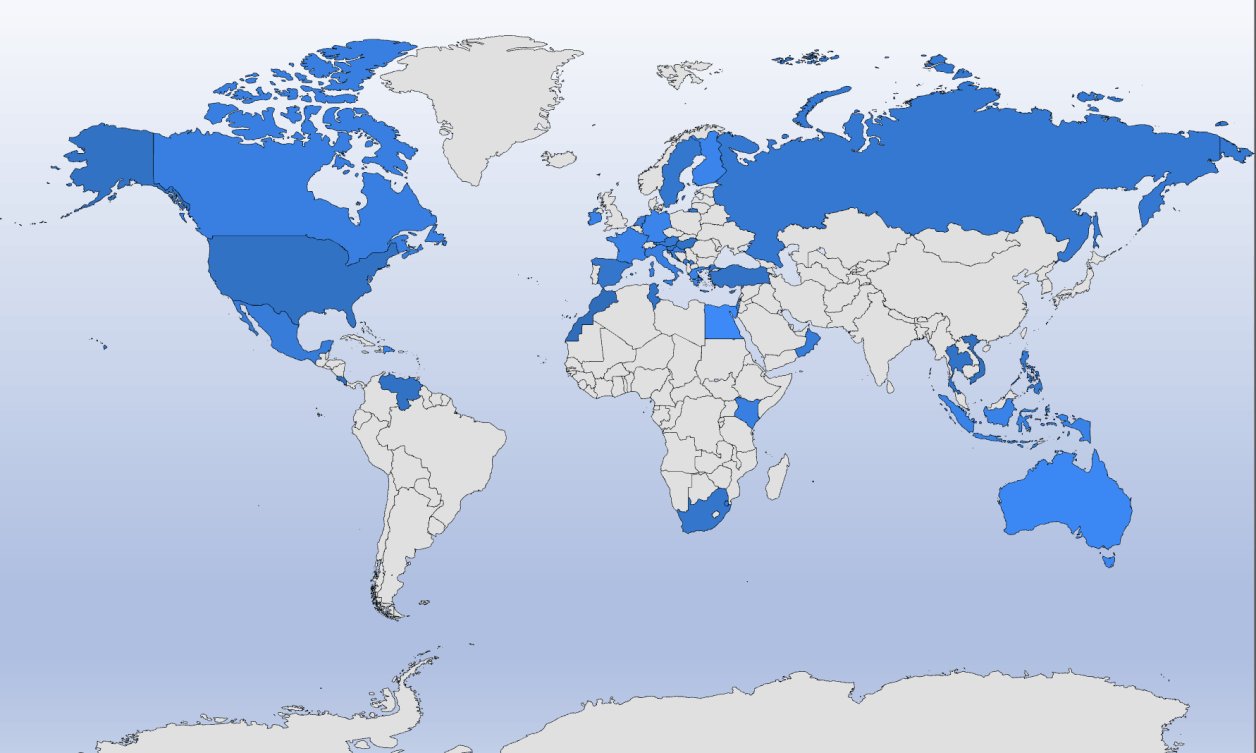 Andorra, Bosnien Herzigovia, Deutschland, England, Finnland, Frankreich, Guernsey, Griechenland, Irland, Israel, Italien, Jersey, Kosovo, Kroatien, Luxenburg, Malta, Montenegro, Niederlande, Österreich, Russland, Schottland, Schweden, Slowenien, Spanien / Kanaren und Balearen, Tschechische Republik, Türkei, Ungarn, Zypern